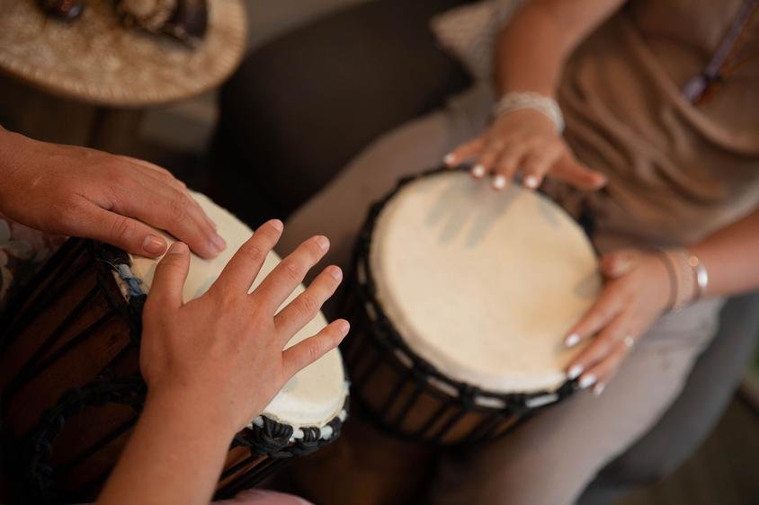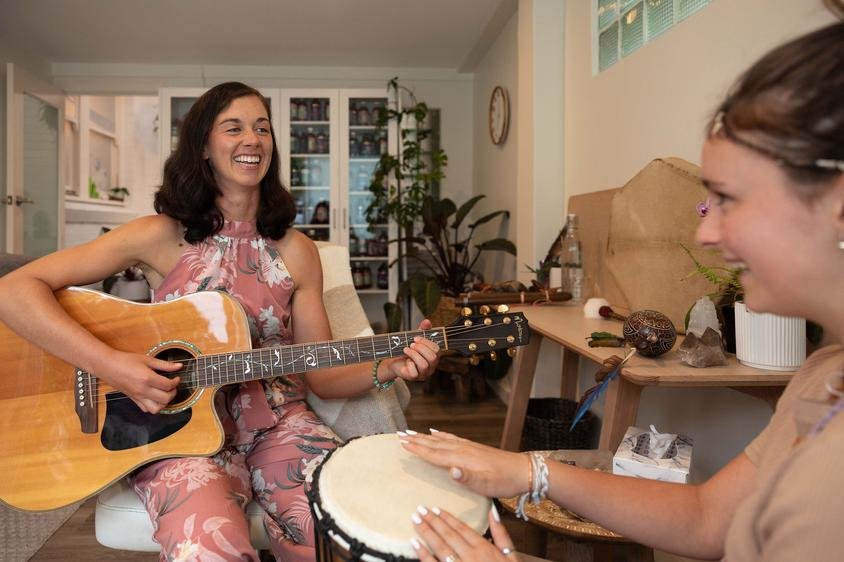 Music Therapy links the use of interactive musical play with non-musical related goals sessions support, building confidence, independence and self-expression, fine and gross motor function, enhancing social engagement, developing communication skills, improving emotional, cognitive and physical self-regulation. Weaving musical play with instruments such as drumming, percussion, bells, voice, wind instruments, guitar, ukulele, bass guitar and keyboard in fun and engaging activities allows an effortless flow towards enhancing relationships with self and others.